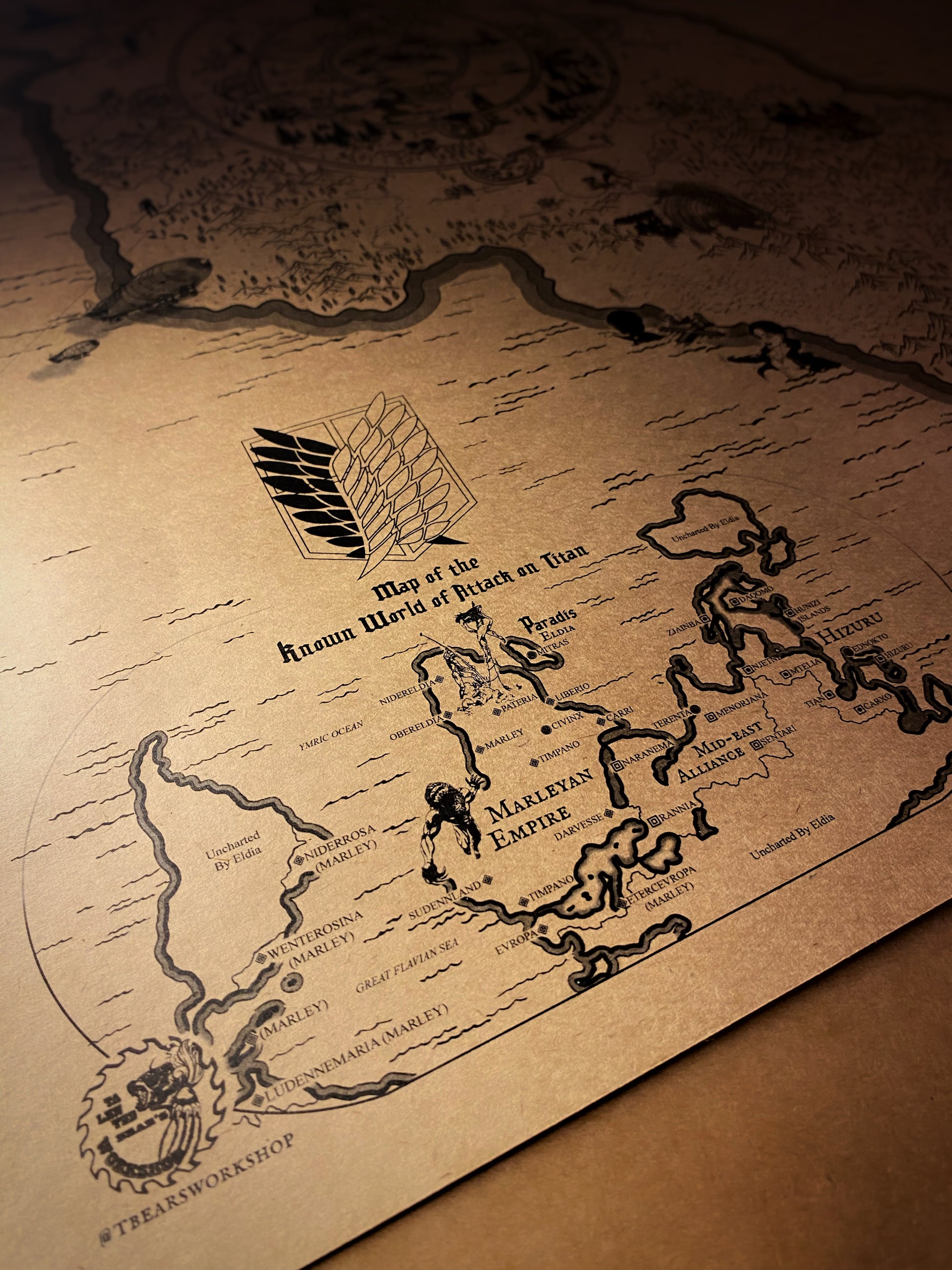 Con 70 × 100 cm (27.5 × 39 pulgadas), este mapa de gran formato transforma tu espacio en una puerta de entrada a un mundo de aventura, tesoros y viajes legendarios.
