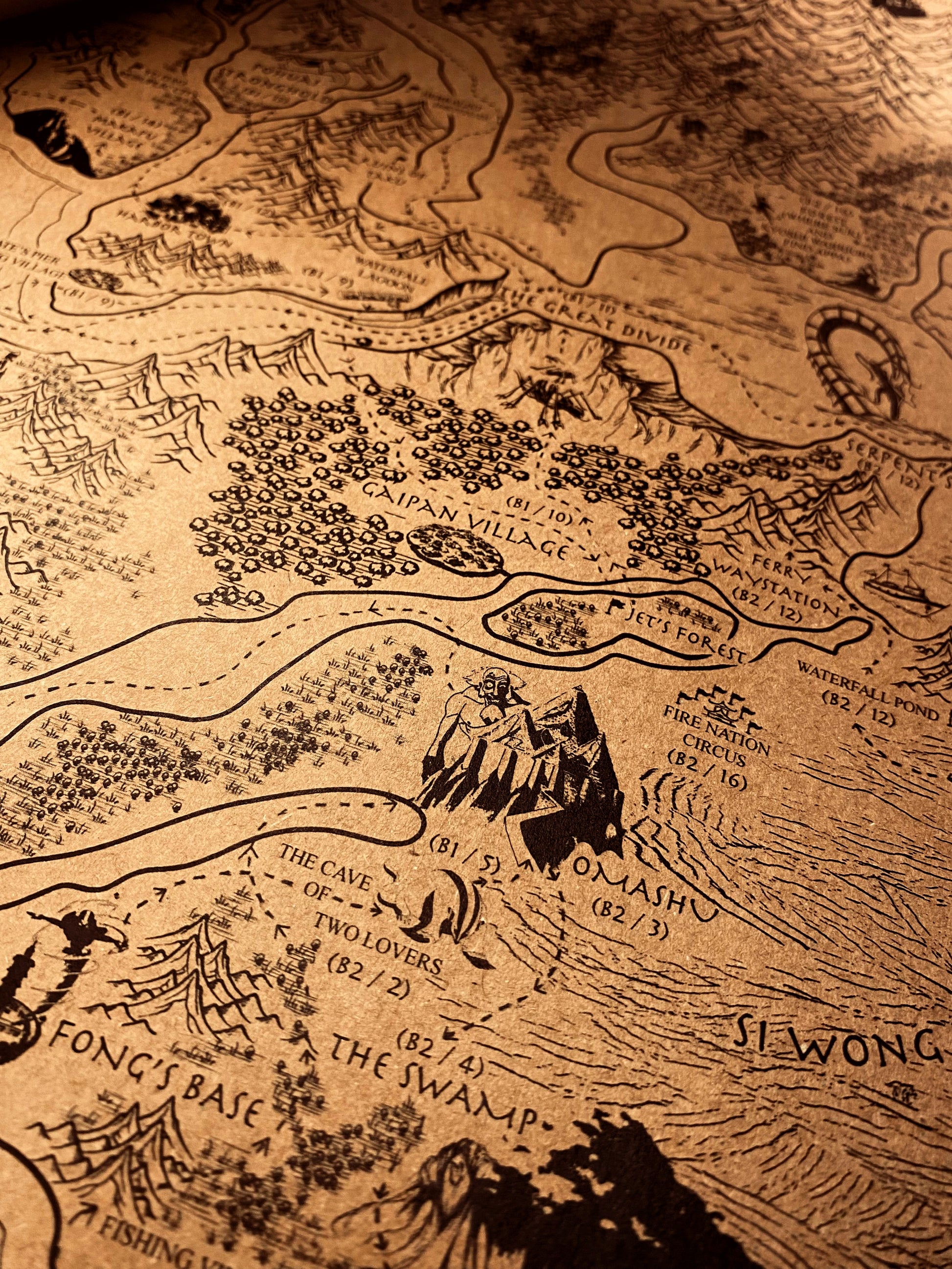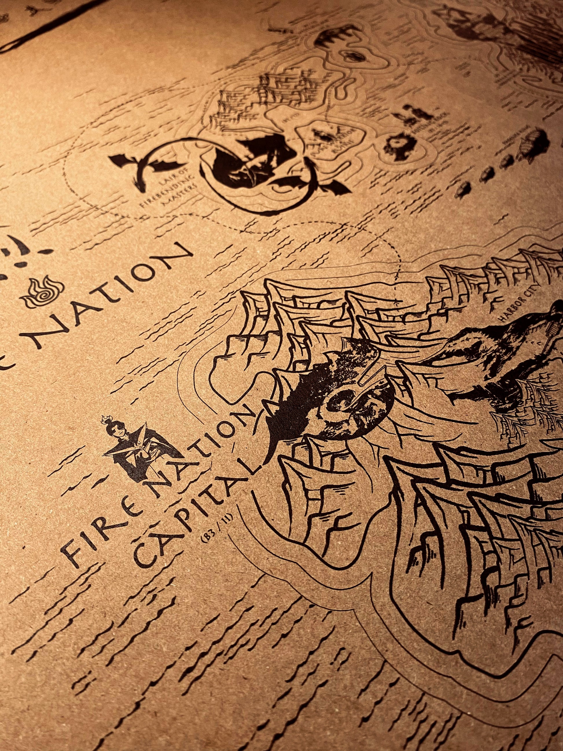 Entrez dans le monde d'Avatar : Le dernier maître de l'air et explorez les quatre nations — la Nation du Feu, les Tribus de l'Eau, le Royaume de la Terre et les Nomades de l'Air — réunies sur une carte exclusive et spécialement conçue. Un élément central incontournable pour les vrais fans de cet univers légendaire.