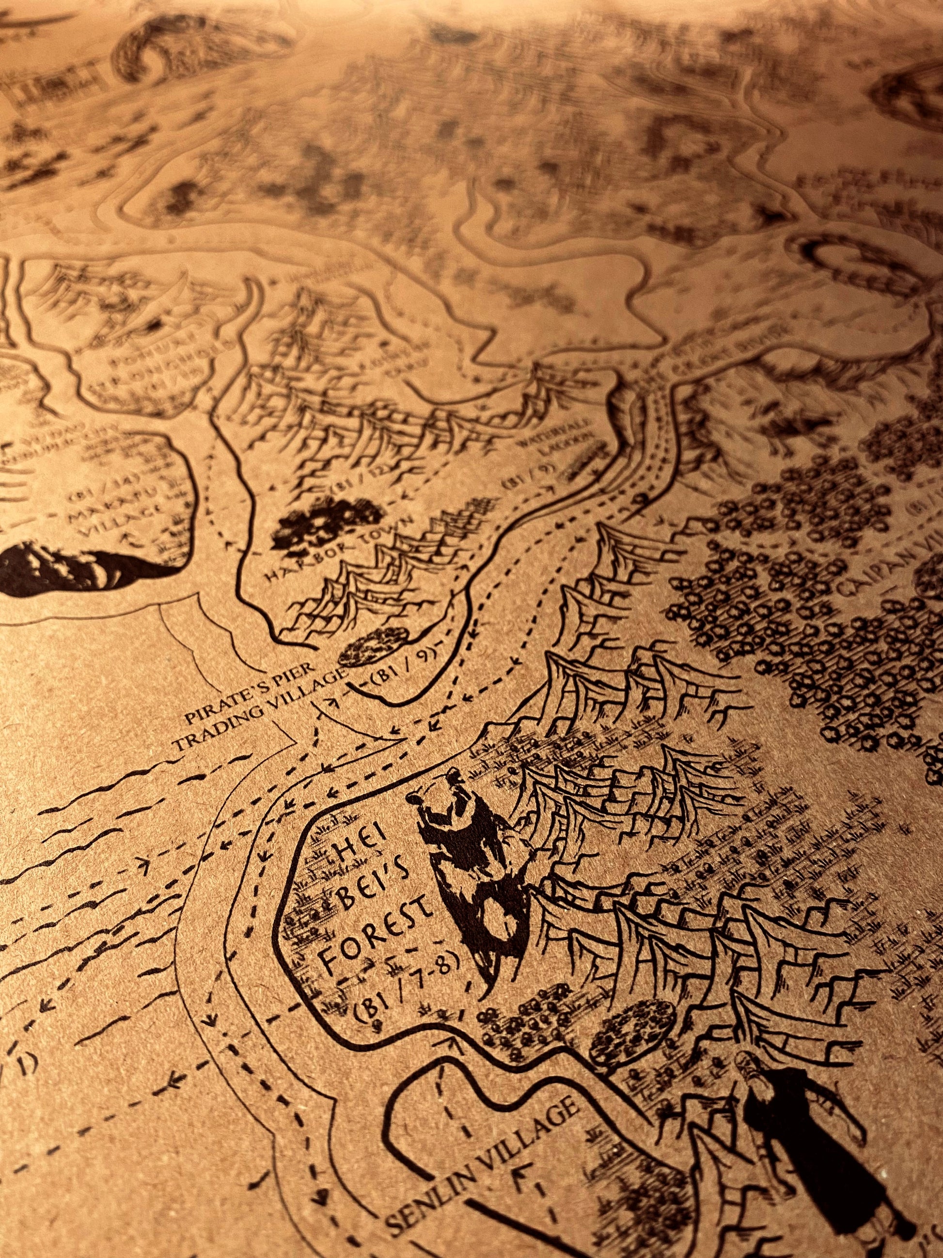 Chaque centimètre de la carte est rendu avec une résolution époustouflante de 300 DPI, révélant des détails complexes qui vous invitent à explorer ce monde iconique comme jamais auparavant.
