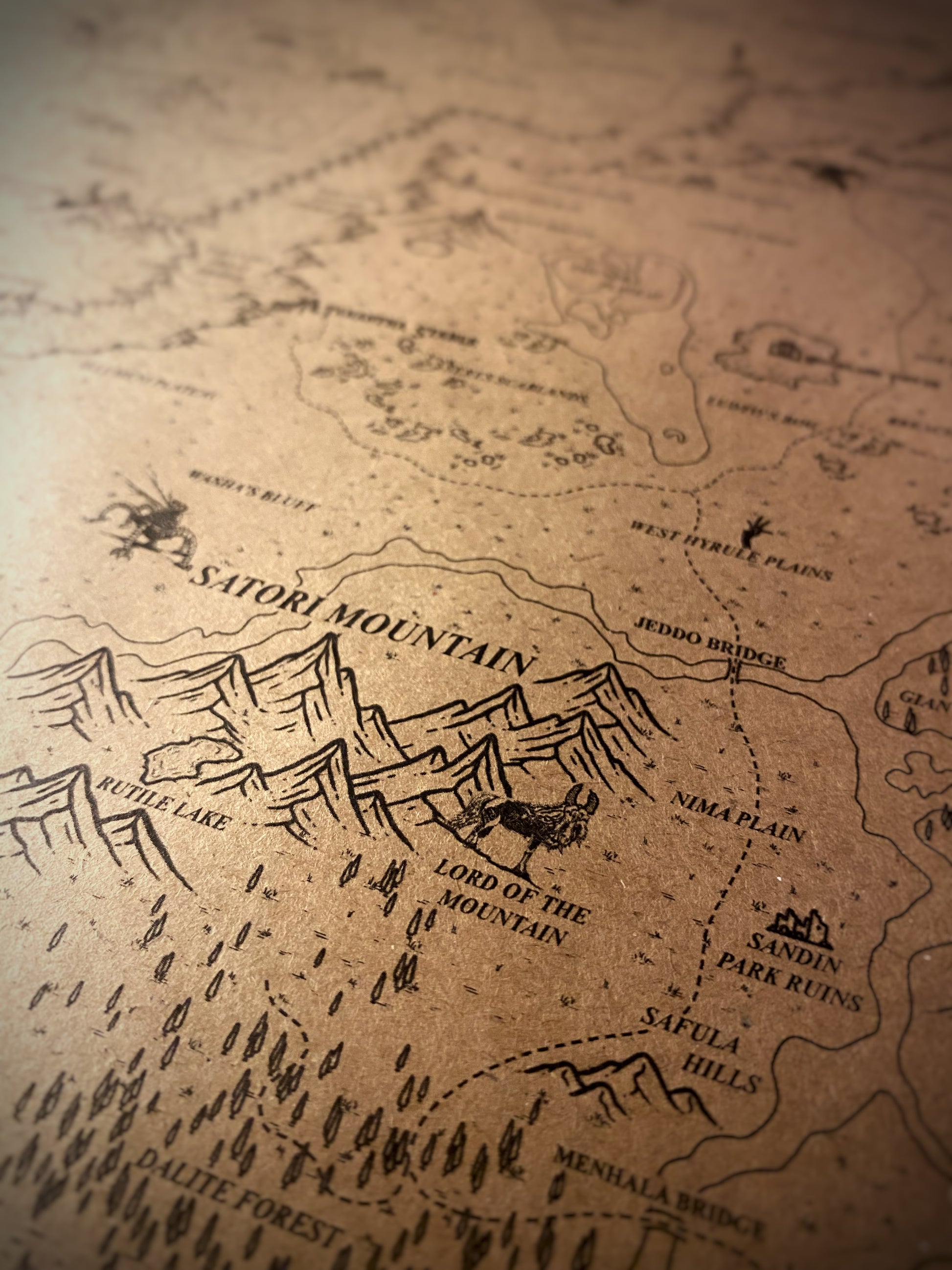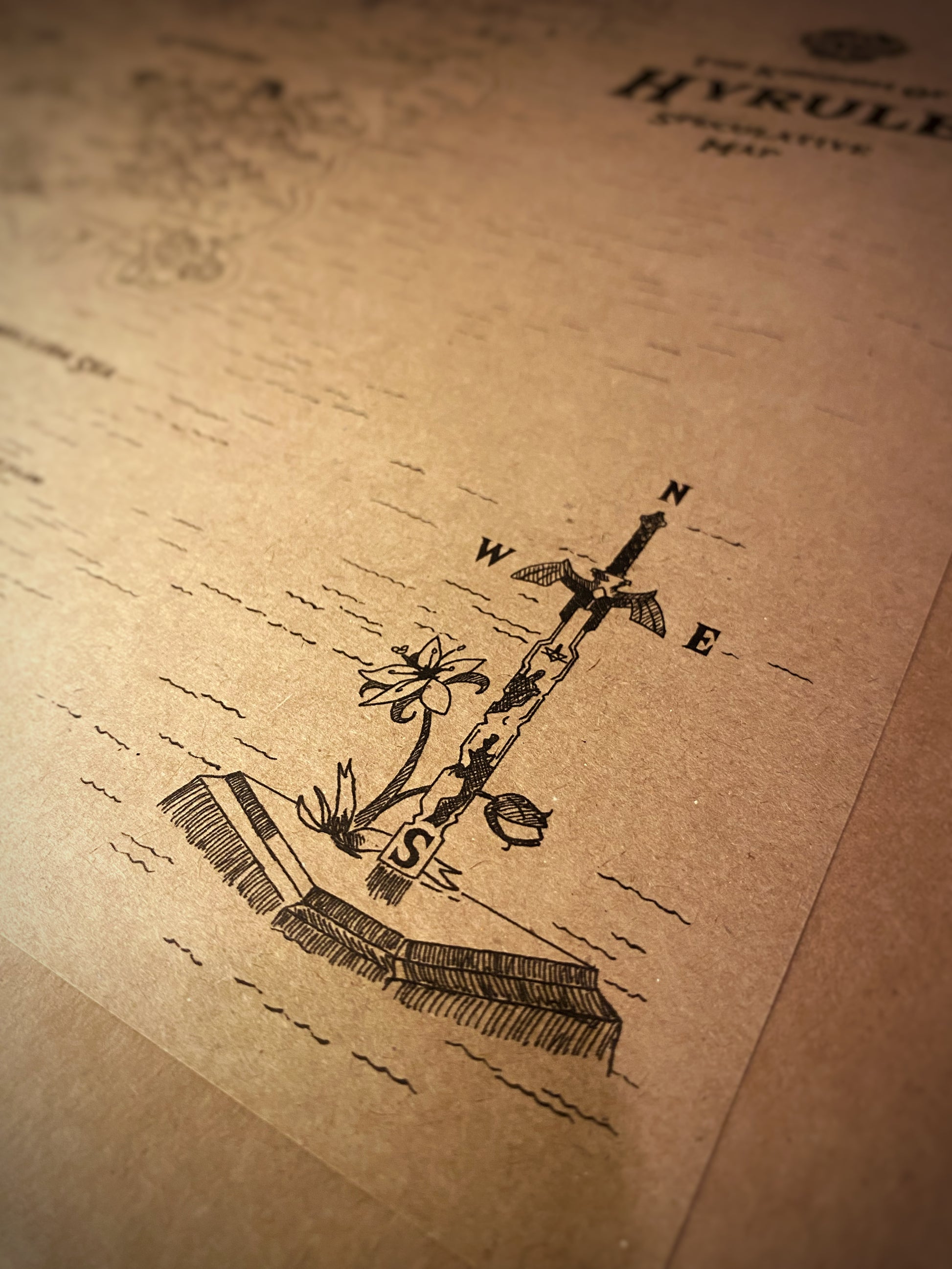 Printed on natural kraft paper, giving it a warm, vintage appearance — like a treasured map preserved from the royal archives of Hyrule.
